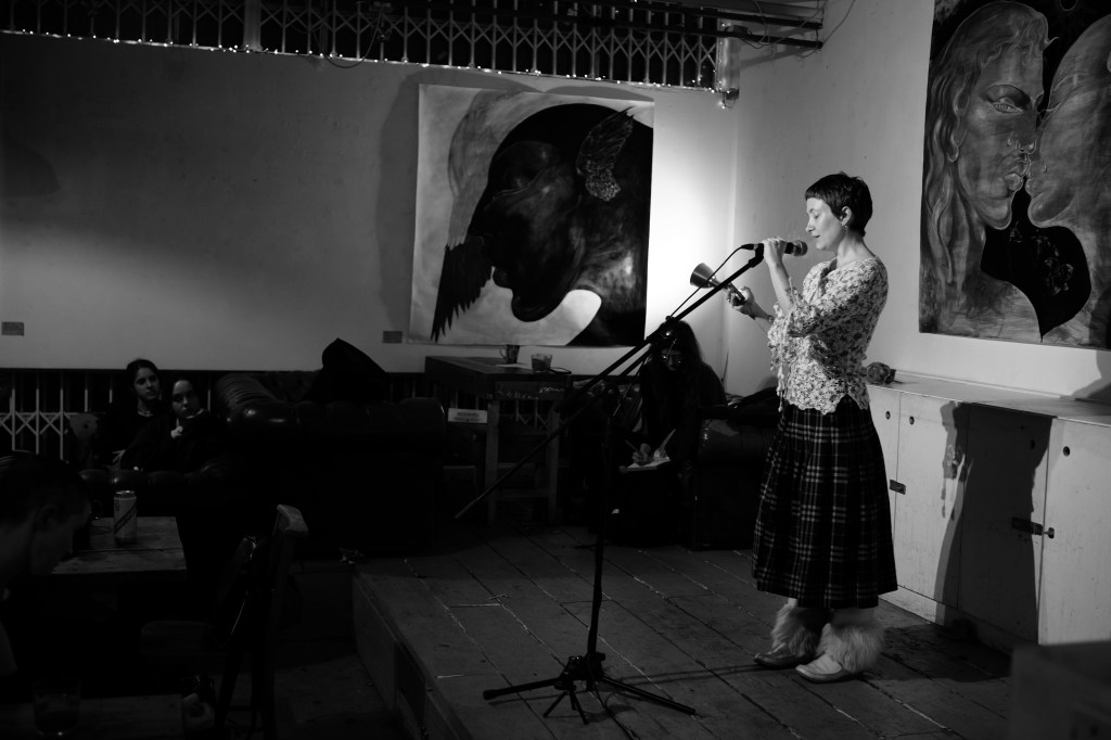 Our ninth AFK took place last Thursday at our old haunt, the Peckham Pelican. Huge gratitude to them especially Stu who helped us lock in the date. Let me just say how hard it is to book venues for poetry. Can someone make a big database of suitable venues please? The big problem in Glasgow is finding a space that is affordable, accessible and relatively stable. Everyone remotely in the Glasgow orbital will know about the decimation of our arts spaces in recent months (CCA and Listen Gallery have just closed). In London, the big problem seems to be finding a venue that won’t require a whopping minimum bar spend way out the league of our skint poetry community. Alas alas. Still, every bar we’ve worked with we’ve worked with because of a poet working at that bar. Keep it in the family. I love the Pelican and its happy hour negronis (‘Peli-gronis’), the friendly bar staff, big space, wonky bookshelf. I love how in London there is almost always transport home after dark, whereas in Glasgow you have to negotiate ride-shares on Ubers (an option newly available to me now I caved and finally moved south) or try and line up two buses, one of which is guaranteed to not show up, leaving you stranded in a vortex of raging seagulls and vape shops (‘town’), or in the industrial hinterlands of Tradeston. Online, I’ve seen recent movement in campaigning for better transport in Glasgow and I hope something comes of it. The amount of times I have walked 1.5 hours home after midnight…