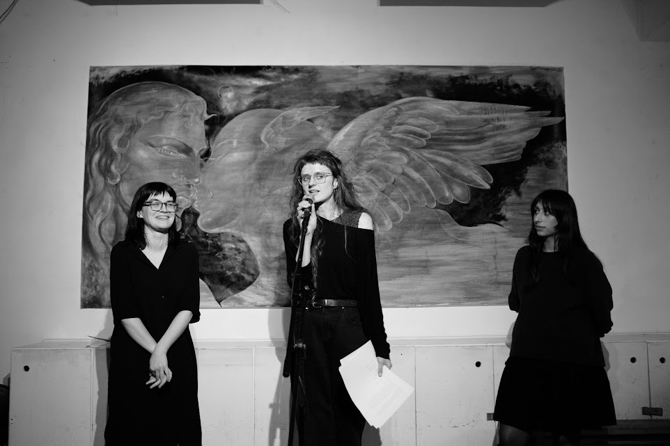Next was Dora Maludi, who began with ‘Fear of dog’: a stunning, swerving poem about ownership, being on the leash, love, thread, fear, birth. I wrote down ‘failure as an embroidered emblem’, ‘it is not normal to lick weaponry’, ‘the anatomy was spectral and well-meaning’, ‘woof like you mean it’. It’s a good ethic to howl like you mean it. What does that look like in a poem? It’s almost like Maludi took the skeins of that howl – the shimmering microscopic particle matter – as a skyward formation swooping upwards and elsewhere in her reading. She also read from a ‘dental memoir’ which among other things describes menstruating all over the Ed Atkins retrospective at the Tate. I wrote down ‘microplastic and dandy’. I think microplastics came up in a couple of readings. Talking of skeins, I told everyone about how last time I was at the dentist the radio was playing ‘Geese’ and how much that upset me because I love Geese and this means a lot to me because for a long time friends described me as ‘gooseblind’ because I couldn’t recognise a goose from a lineup of idk ducks, and now that I knew what geese looked like and in fact loved the band Geese, I couldn’t have these neurological connections ruined by the everyday pain of a scale and polish. My dumb segue comment did not have room to explain that context so there it is.