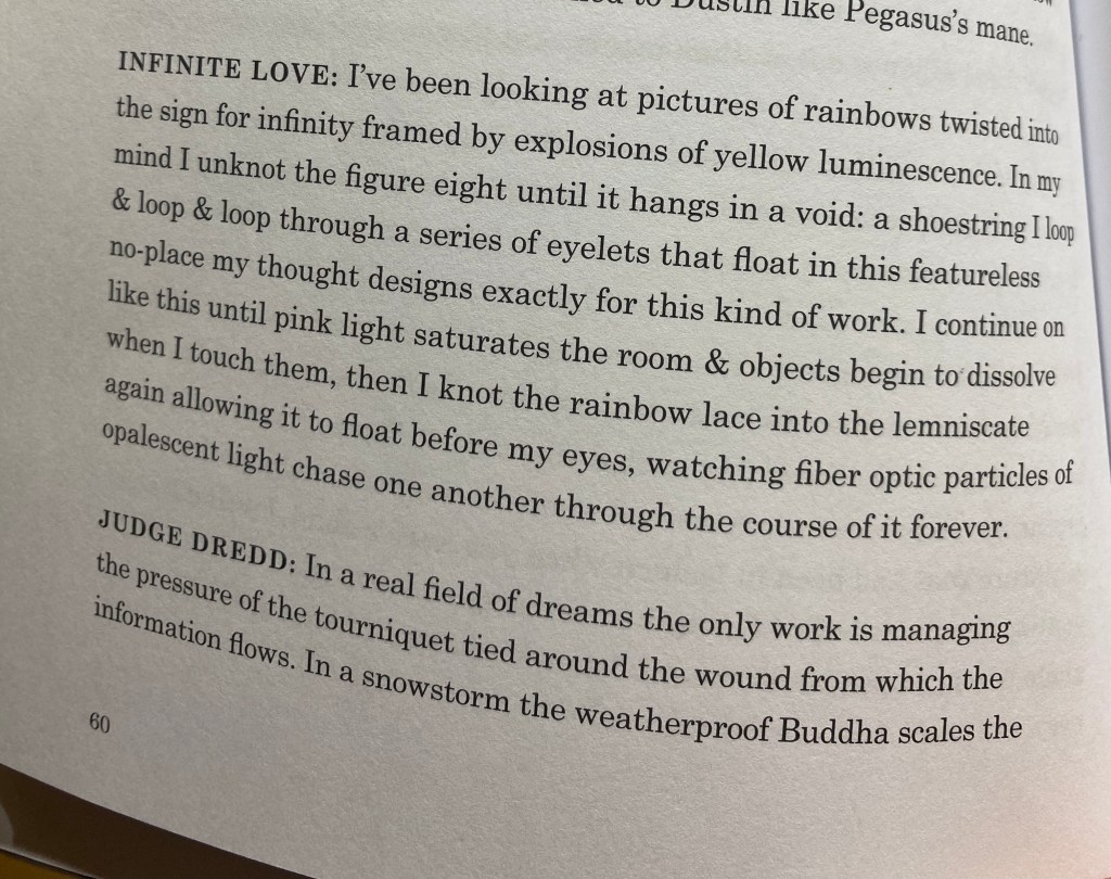 Infinite Love Posted on January 23, 2022Categories poetry from Dana Ward’s The Crisis of Infinite Worlds (2013) Share this: Click to share on X (Opens in new window) X Click to share on Facebook (Opens in new window) Facebook Like Loading...