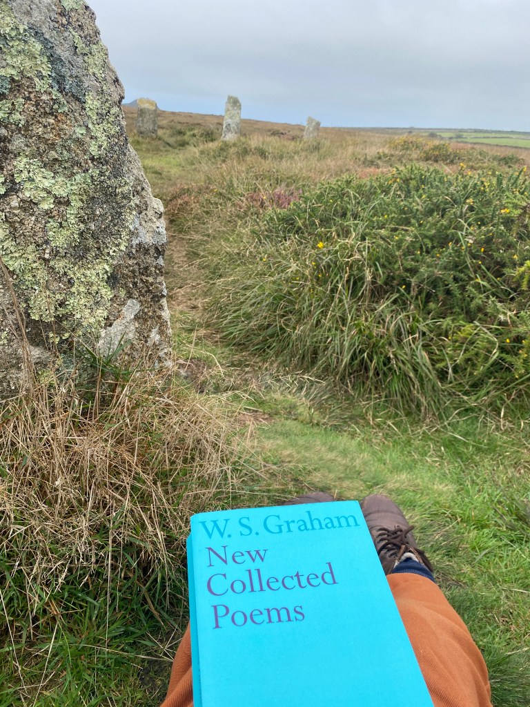 In Cornwall, I love falling asleep. I love falling for new poems, stumbling a little on the rugged paths, falling for the air and water, for a little more mermaid’s ale or Bell’s, a blackcurrant kombucha or 100g of coconut mushrooms. In his essay for Poetry Foundation, ‘This Horizontal Position’, Oli Hazzard writes about a time Graham ‘went for a walk on Zennor Hill in Cornwall and fell into a bramble bush’. This falling was a repeat pattern: in 1950 he drunkenly fell off a roof and complained of his three-month hospital stay, ‘I hate this horizontal position’. In my DFA thesis I wrote extensively about lying down as a beginning for writing, the horizontal as a form of refusal when it comes to the upright requirements of an assertive ‘I’. It’s no secret that I prefer poetry in the mode of dreamtime, but that’s not to say I’m also a rambler. It’s a poetry of breath and of steps (of vigour!) I enjoy in Graham. Zigzagging and winding down well-trodden moor paths, stumbling upon bridleways that lead around the hills from holy shrines.