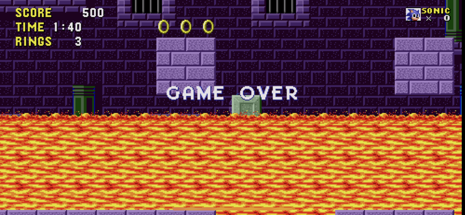 My whole blood is this lava. I’ve been playing an iPhone emulator of the original Sonic the Hedgehog, a game we used to rinse for hours on the Megadrive at my cousin’s house as kids. Playing it now, I find passing through the levels extremely, maddeningly difficult. It might be the iPhone controls (I’ve been mourning the loss of BUTTONS ever since my last Blackberry in 2013) or it might be a general disintegration of spatial awareness and emotional regulation. Pushing boulders around, dodging spike-tipped chandeliers and rolling gushes of lava really sets my blood boiling. The land behind me is on fire and there’s not much time to hang around. But one thing I notice, as my lil Sonic sprite navigates the game, is that I can hear my cousin’s tween voice in my ear and my own silent childhood learning and listening. This is really comforting. Sweet tips she had about ring sites, springs on high, a hidden extra life. I keep dying in the game but I remember something of childhood. I don’t really have landscapes to easily go back to. The years behind me are on fire, but Marble Zone remains.