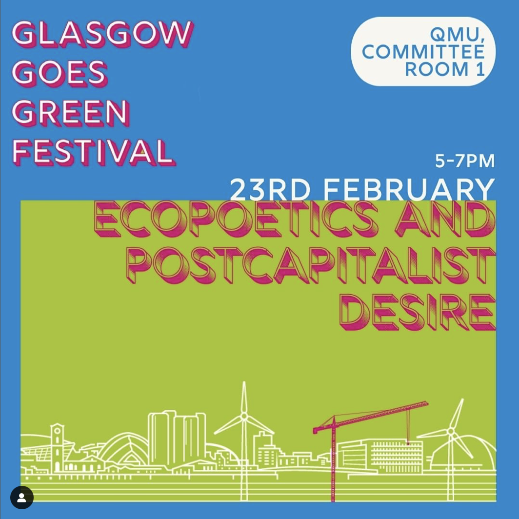 Ecopoetics and Postcapitalist Desire As part of Glasgow Goes Green Festival (QMU, University of Glasgow)