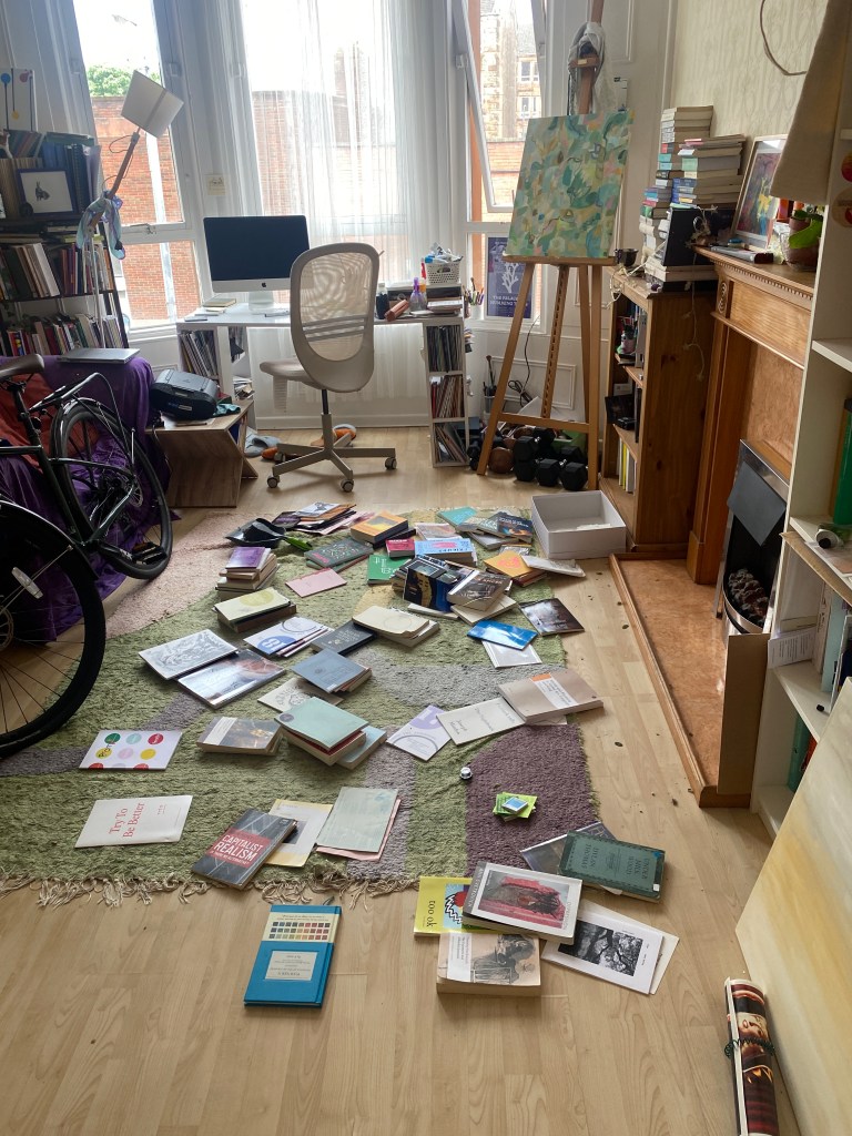 In 2018, I started a Doctorate of Fine Arts in Creative Writing at the University of Glasgow. I also started a new diary. In October, the month it all started, I wrote about duplicate footsteps and permanent landfills. I wrote of lacking the energy to dance, being lost in the forest, looking for safety among swirling leaves. Can’t remember if the forest was real or metaphorical. I wrote seemingly in lieu of being able to actually venture beyond the confines of my working life. Over three years and three months, I went through multiple iterations of research focus. I looked at foam, clouds, technicity, glitter, quotidian measures, fire and cinders. I fell asleep on coaches circling lochan sunsets. I produced a list of figures for how we might conceptualise this project. It was a sort of Escherian dollshouse, a self-deconstruction of building this place to think. I thought about Bhanu Kapil dropping her book in the river. I thought about doing a writer’s residency within the confines of a square-shaped digital platform. I wrote of ‘An angel tossing her gunpowder sequins’ and ethical eating, ‘how so often you are so paralysed between two choices that you just don’t eat at all’. I wondered what kind of home this work would make for me. This was a material question: thanks to the Scottish Graduate School of Arts & Humanities, it was a funded period. It paid me through Covid-19.