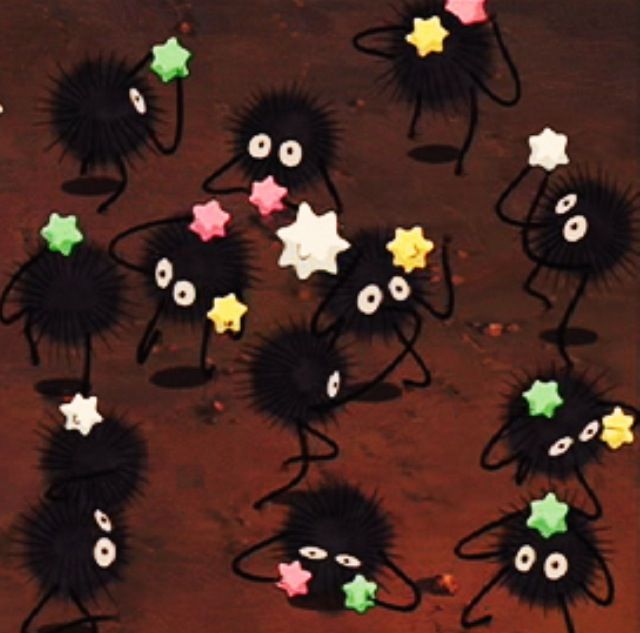 An absent-presence in My Neighbour Totoro is Noriko and Mei’s mother, Yasuko, who is in hospital, recovering from an unexplained ‘illness in the chest’. Mei’s confrontation with the animated dust mites, or soot sprites, acts out the wound of her mother’s absence. With curiosity and panic, she and her sister delight in the particulate matters of the household, of more-than-human hospitality. What is abject about history then, or even the family, its hauntings, is evoked trans-corporeally through the trace materials of a powdery darkness, dark ecology (see Timothy Morton’s 2016 book of this name) that is spooky but sweet. (S)mothering in the multiple. My sense of smell now is consumed entirely by a kind of offbeat metallic ash; I’m nostalgic for cheap perfume. I’m not sure if this essay is a confession or who is speaking; it seems increasingly that I speak from a cloud of unknowing coronaviruses. And so where do I end or begin, hyperbolically, preparing my pen or straw? The ouroboros of my dust anacondas reminding me that I too was only here, alive and in this flat, by tenancy and to return from my current quarantine having prodded the household spirits for company, with nothing for show for it these days, except these, dust, my words.