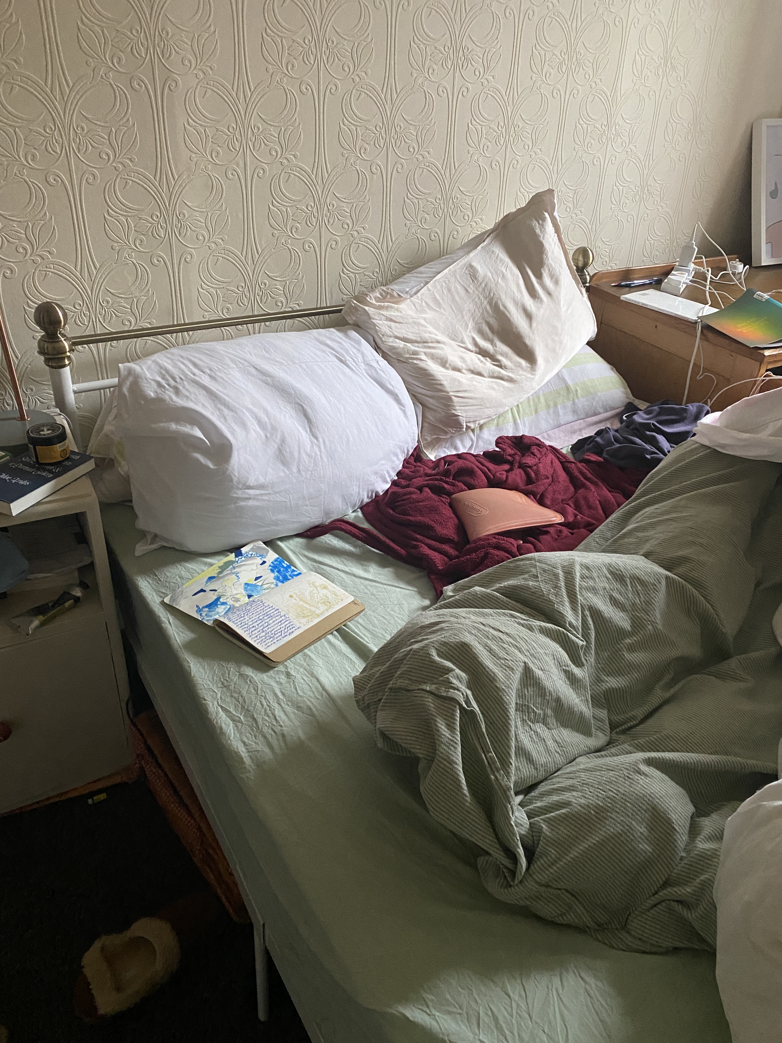 The morning I tested positive for Covid on a lateral flow, having assumed my respiratory problems were accountable to generalised allergies, I decided to blitz my one-bedroom flat of dust. In the hot panic of realising my cells were now fighting a virus, I vacuumed my carpet and brushed orange cloths over bookshelves. I was really getting into it. Then my hoover began making a petulant, rasping noise. I turned off the power and flipped it upside down. To my horror, in the maw of the hoover’s rotating brush, I saw what can only be described as dust anacondas: huge strings of dense grey matter attached to endless, chunky threads of hair. Urgently donning a face mask, I began teasing these nasty snakes out with a pencil, as clumps of dust emitted from the teeth of the hoover and gathered on my carpet, thickly. All this time I was crying hysterically at the fact of my having Covid less than two weeks before my PhD thesis was due, the hot viral feeling in my head, and of having to deal with the dust of my own flesh prison: the embarrassment, shame and fail of it all, presented illustriously before me.